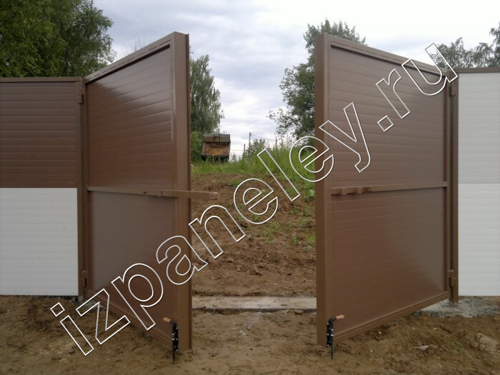 Стандартная толщина ворот из сэндвич панелей - от 50 до 100мм. Стандартные ширина и высота ворот - 2 х 3 метра. По вашему техническому заднию можем изготовить распашные ворота из сэндвич панелей с другими размера. Маскимальные размеры распашных ворот из сэндвич-панелей- 6х6метров.