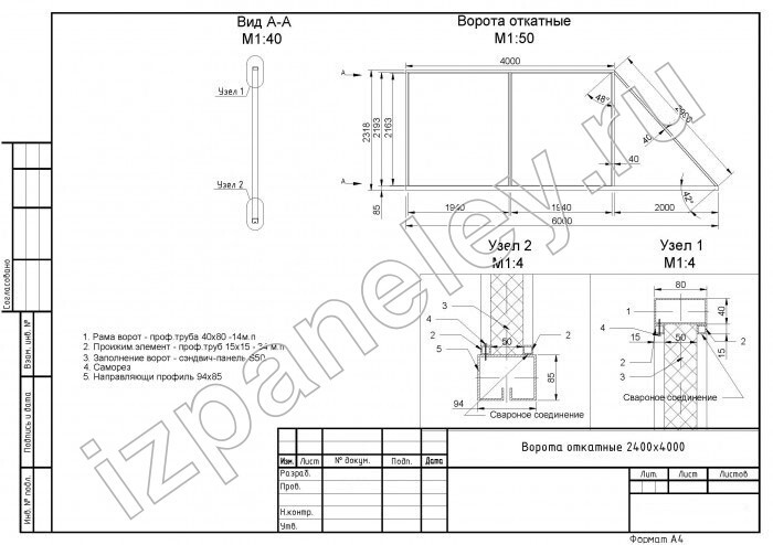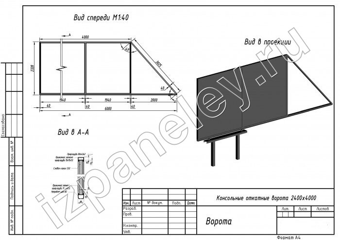 Стандартные ширина и высота ворот - 2 х 4 метра. По вашему техническому заднию можем изготовить откатные ворота из сэндвич панелей с другими размерами.